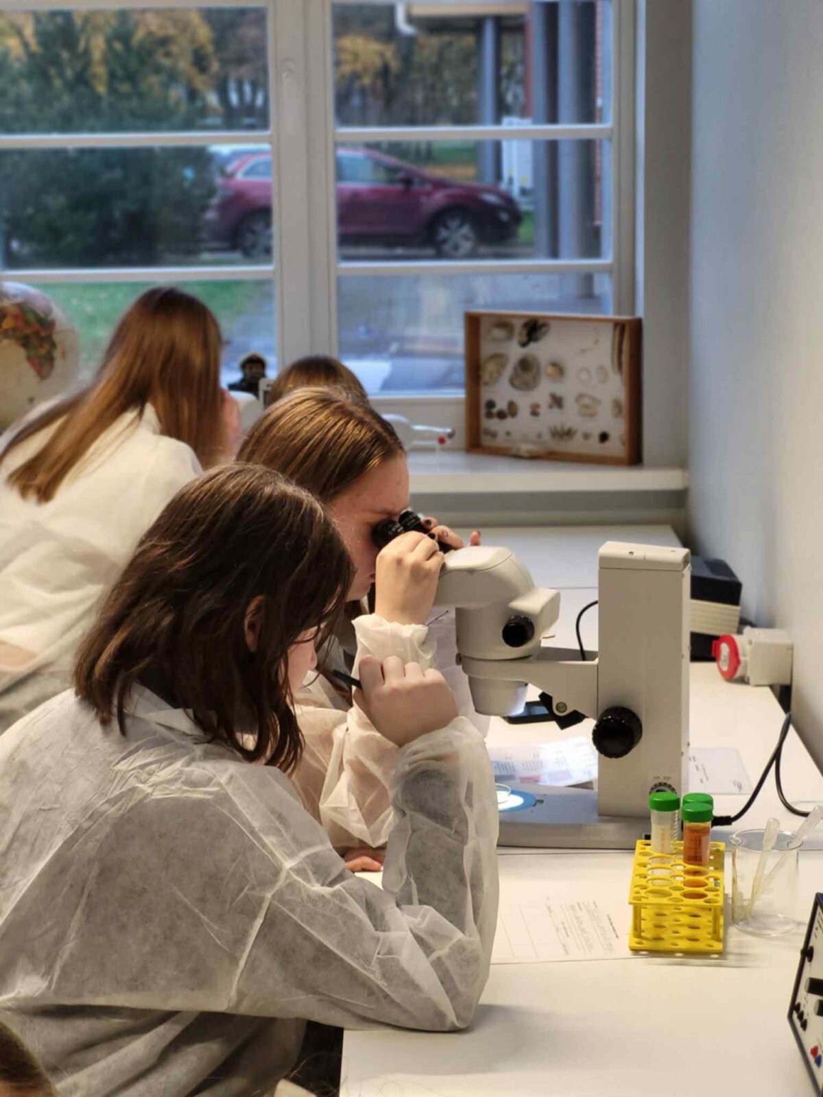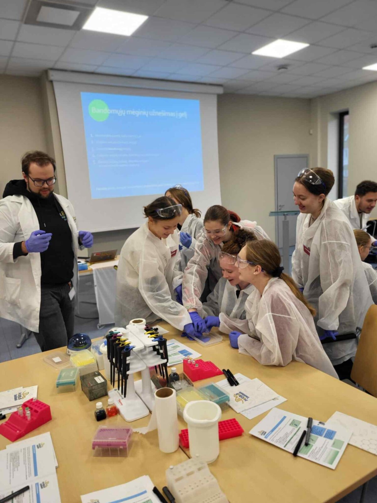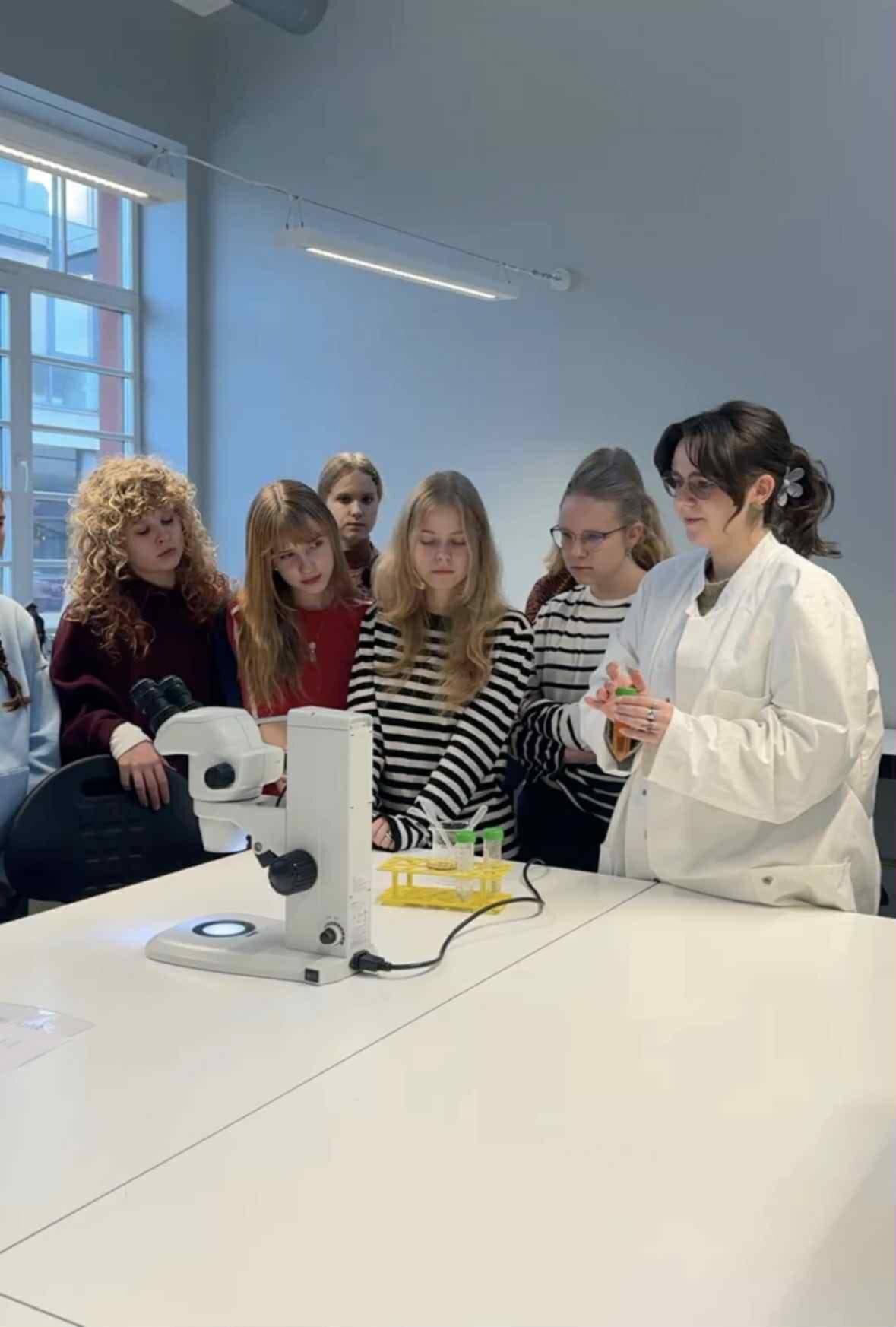 Programa pasirodė puikiai apgalvota: susipažinome su Klaipėdos universiteto veiklomis, apsilankėme jų STEAM laboratorijoje, bendravome su mokslininkėmis. Didžiausią įspūdį paliko mobilioji bioklasė — čia išbandėme, kaip iš bakterijų išskiriama DNR, ir tyrėme, ar erkė turi erkinio encefalito ar Laimo ligos sukėlėjų.
