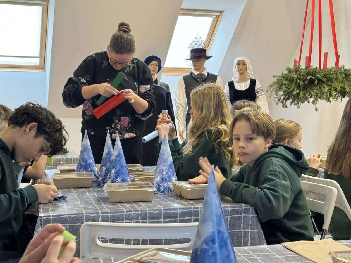 Moksleiviai kiekvienas sau pasigamino po kalėdinę dovanėlę ir smagiai praleido laiką muziejuje.