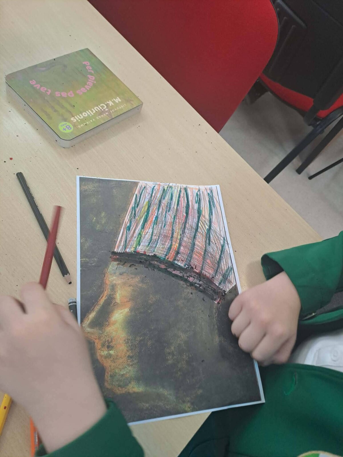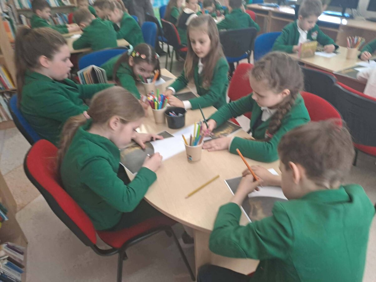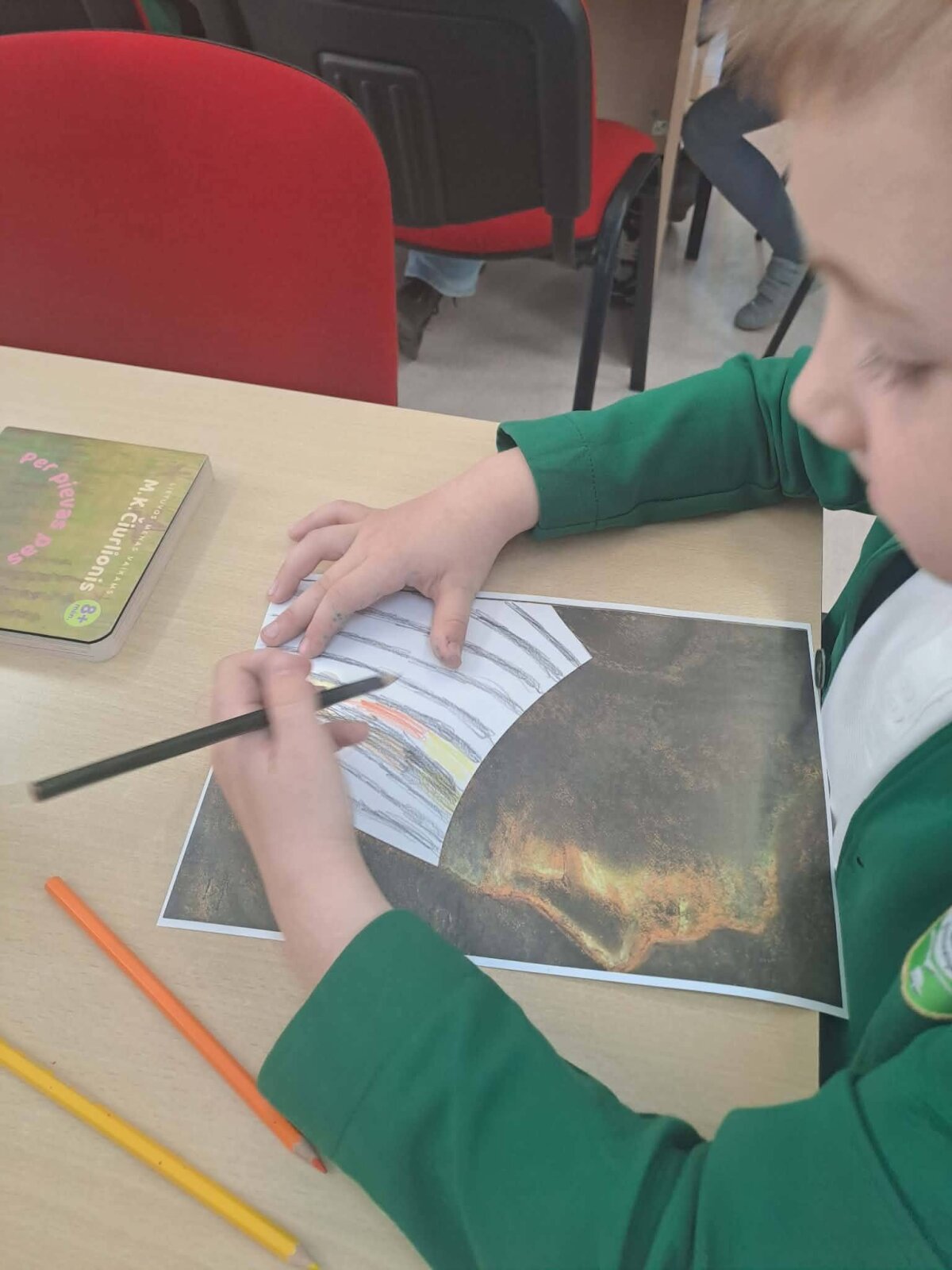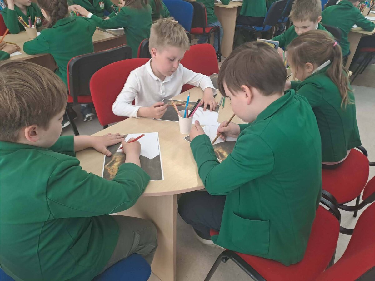 Antroje edukacijos dalyje mokiniai susipažino su M.K.Čiurlionio tapyba ir kūriniu"Bičiulystė". Tuomet galėjo išreikšti savo meninius gebėjimus, baigdami piešti kūrinio fragmentą.