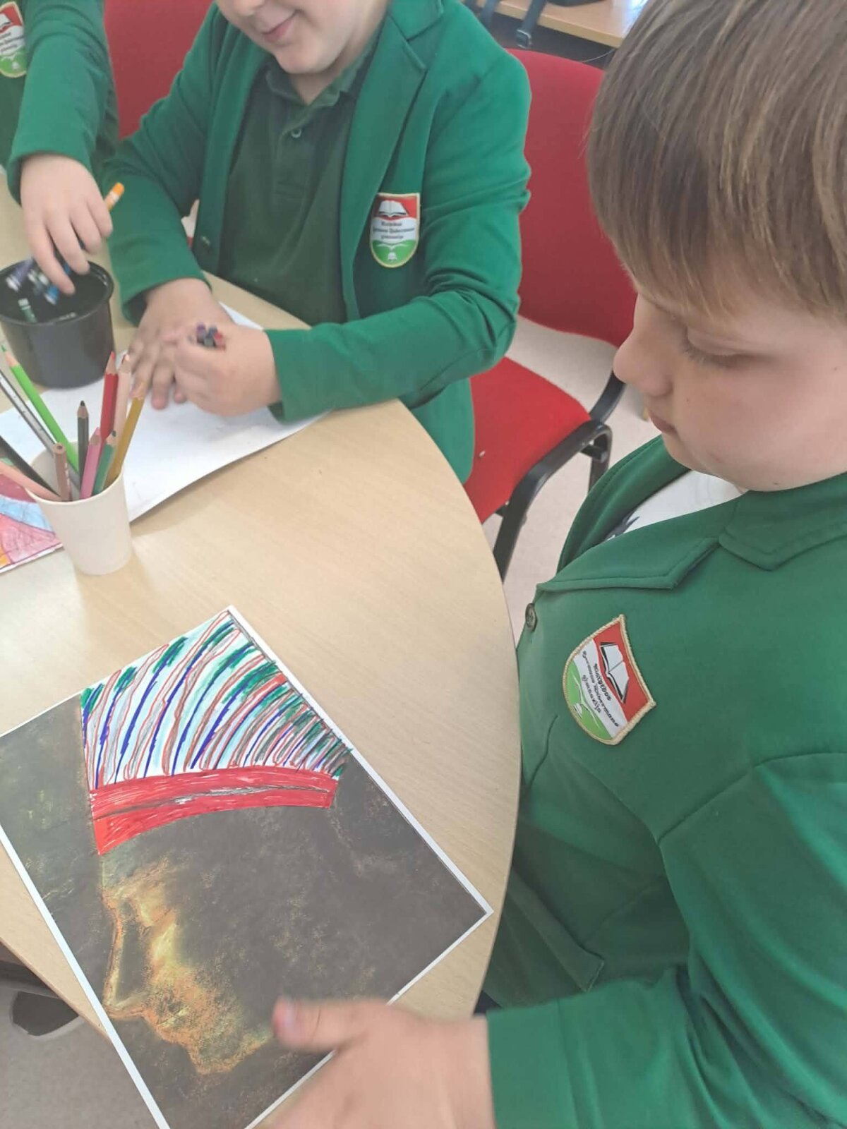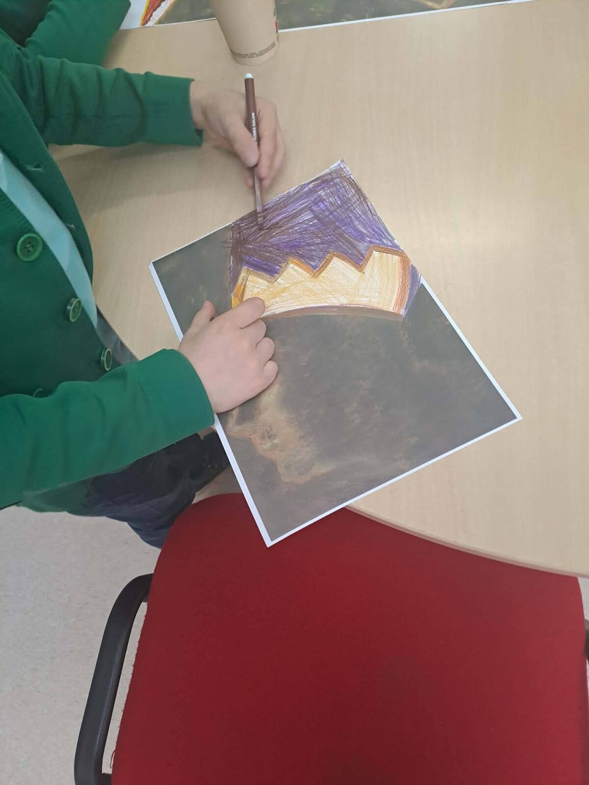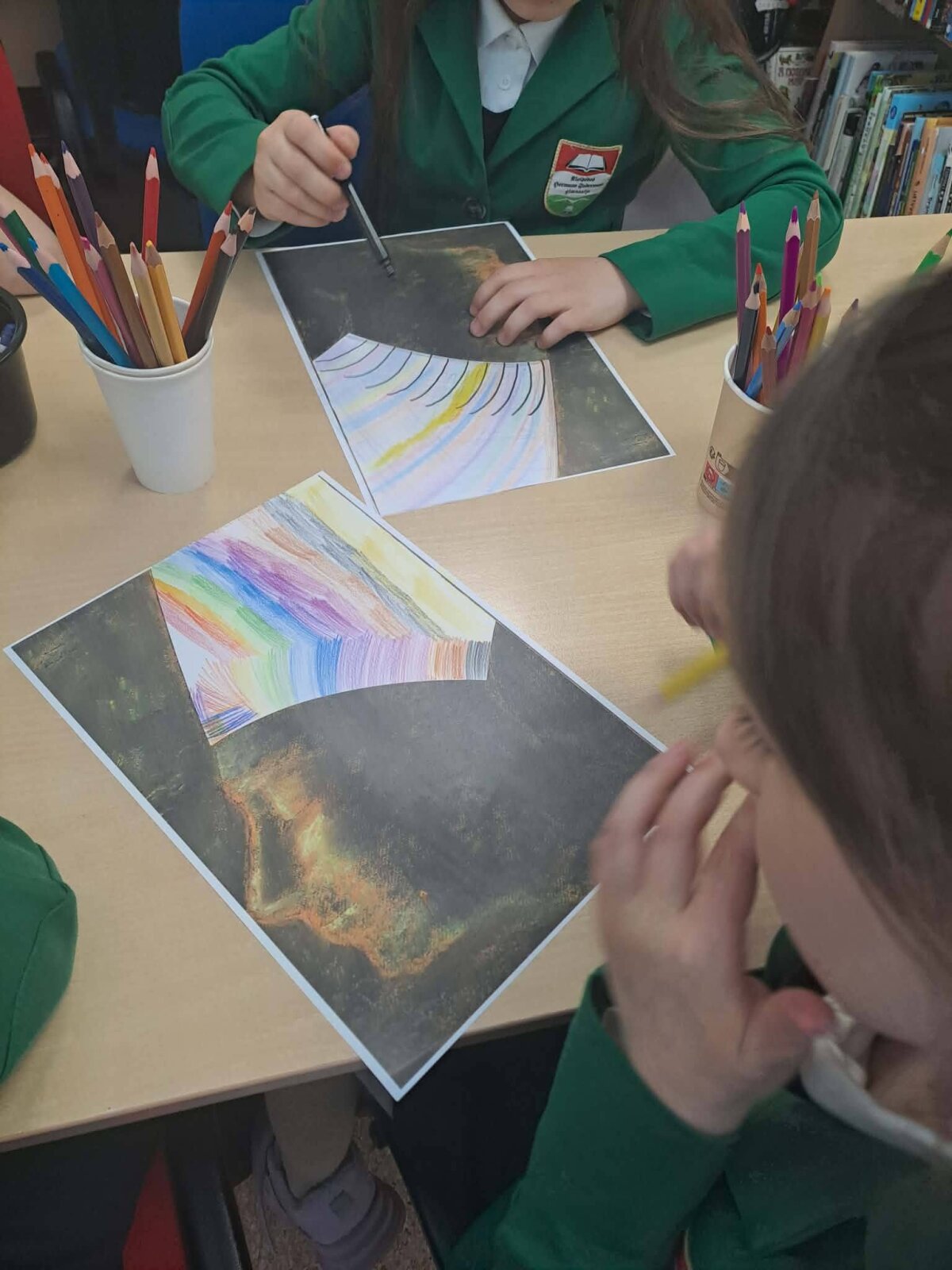 Antroje edukacijos dalyje mokiniai susipažino su M.K.Čiurlionio tapyba ir kūriniu"Bičiulystė". Tuomet galėjo išreikšti savo meninius gebėjimus, baigdami piešti kūrinio fragmentą.