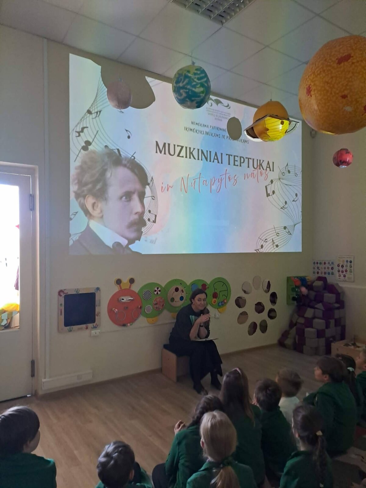 Balandžio 22 dieną Klaipėdos Hermano Zudermano gimnazijos 1c klasės mokiniai kartu su mokytoja Audrone Jovaišiene, mokinio padėjėja Henrita Žemaite ir karjeros specialiste Loreta Tamošaitiene dalyvavo žaismingoje edukacijoje "Muzikiniai teptukai".