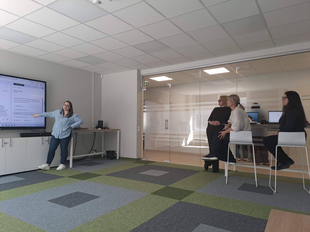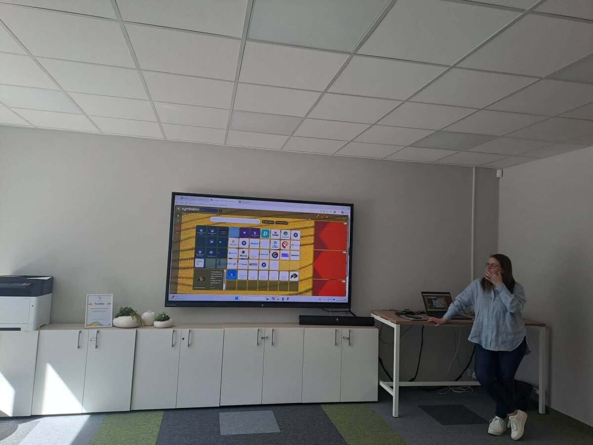 Balandžio 23 dieną projekto dalyvės Lauryna, Neringa ir Rita dalinosi gerąja patirtimi ir pristatė keletą DI įrankių mokyklos darbuotojams, kuriuos pačios sėkmingai naudoja savo pamokose ir administraciniame darbe.