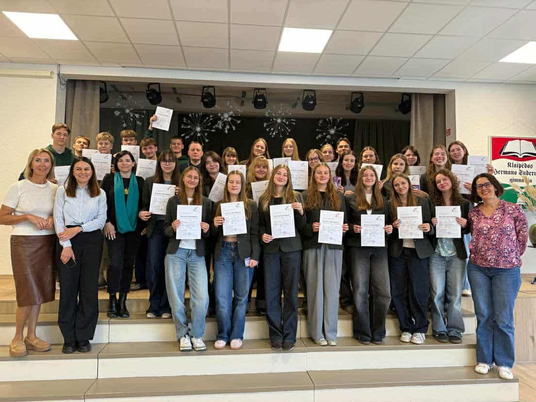 Nuoširdžiai sveikiname mokinius, išlaikiusius tarptautinį vokiečių kalbos DSDI egzaminą. Šią savaitę net 30 dešimtokų buvo įteikti tarptautiniai vokiečių kalbos diplomai. Džiaugiamės ir didžiuojamės jumis.