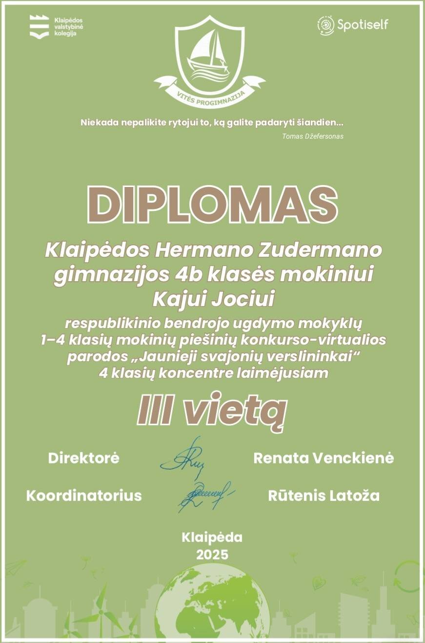Hermano Zudermano gimnaziją konkurse atstovavo 4b klasės mokinukai Kajus Jocius, Rūta Žilaitytė ir Evelina Puškoriūtė.