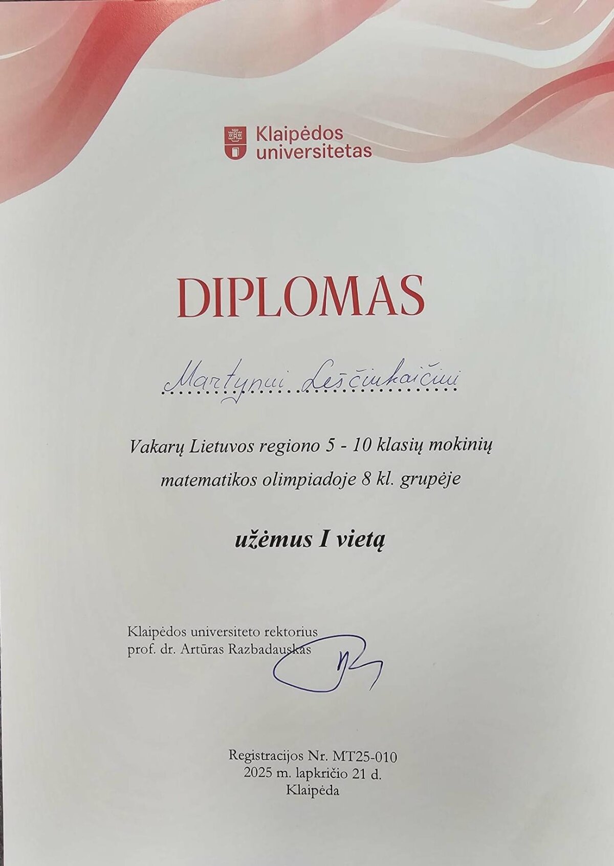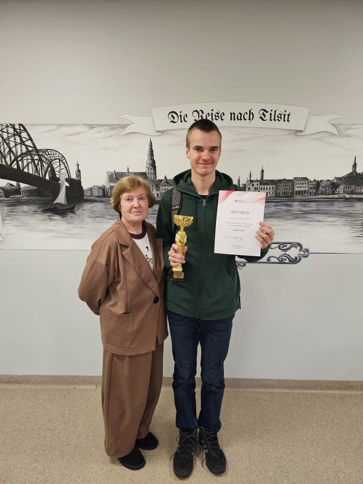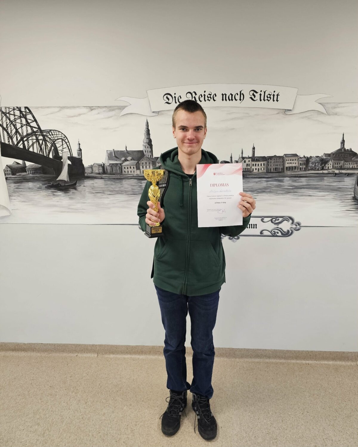 Mūsų gimnazijos 8b klasės mokinys Martynas Leščiukaitis laimėjo pirmąją vietą ir buvo apdovanotas Klaipėdos universiteto taure.