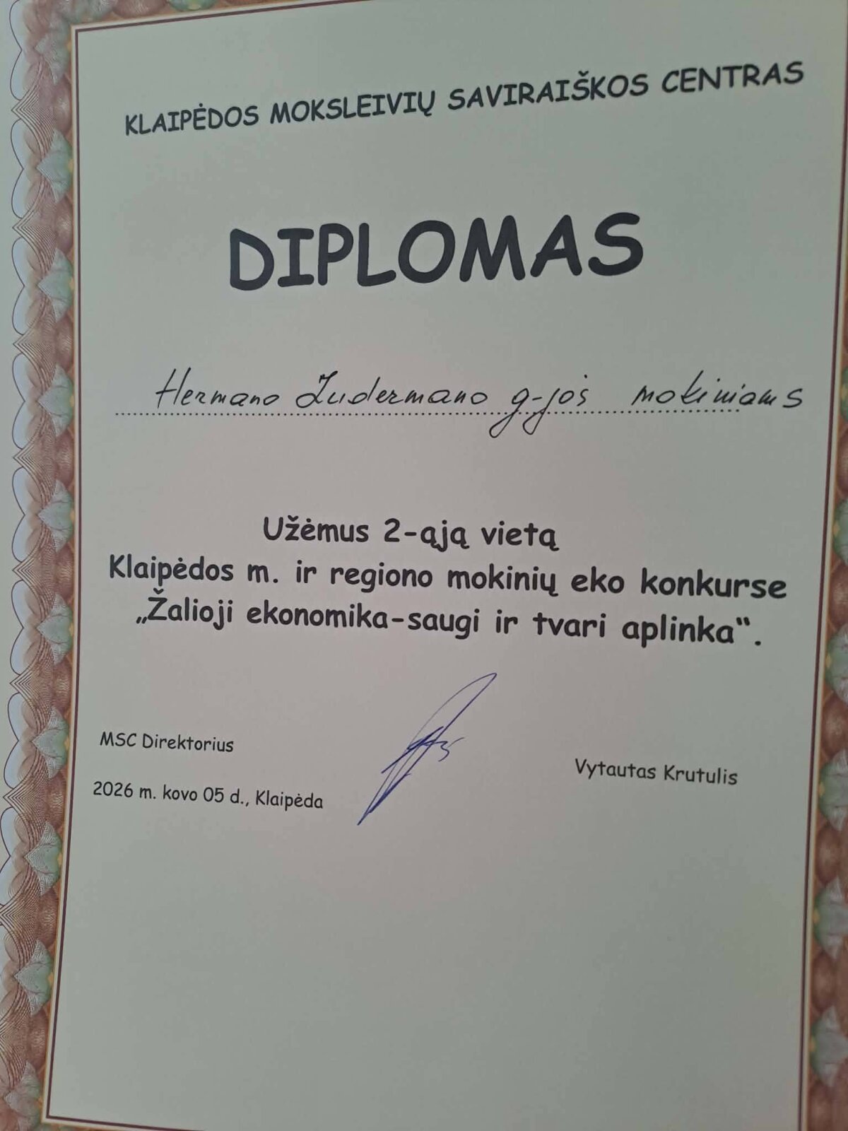 Kovo 5 dieną Klaipėdos miesto moksleivių saviraiškos centre vyko Klaipėdos miesto ir Klaipėdos regiono moksleivių konkursas "Žalioji ekonomika-saugi ir tvari aplinka!"