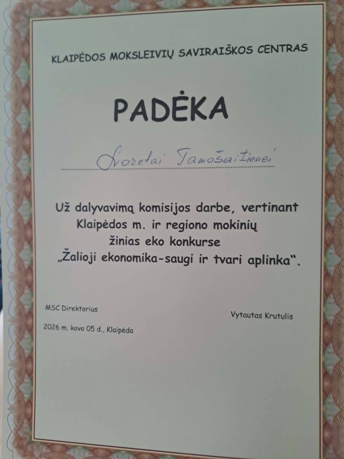 Komisijos darbe pakviesta buvo dalyvauti mokytoja Loreta Tamošaitienė.