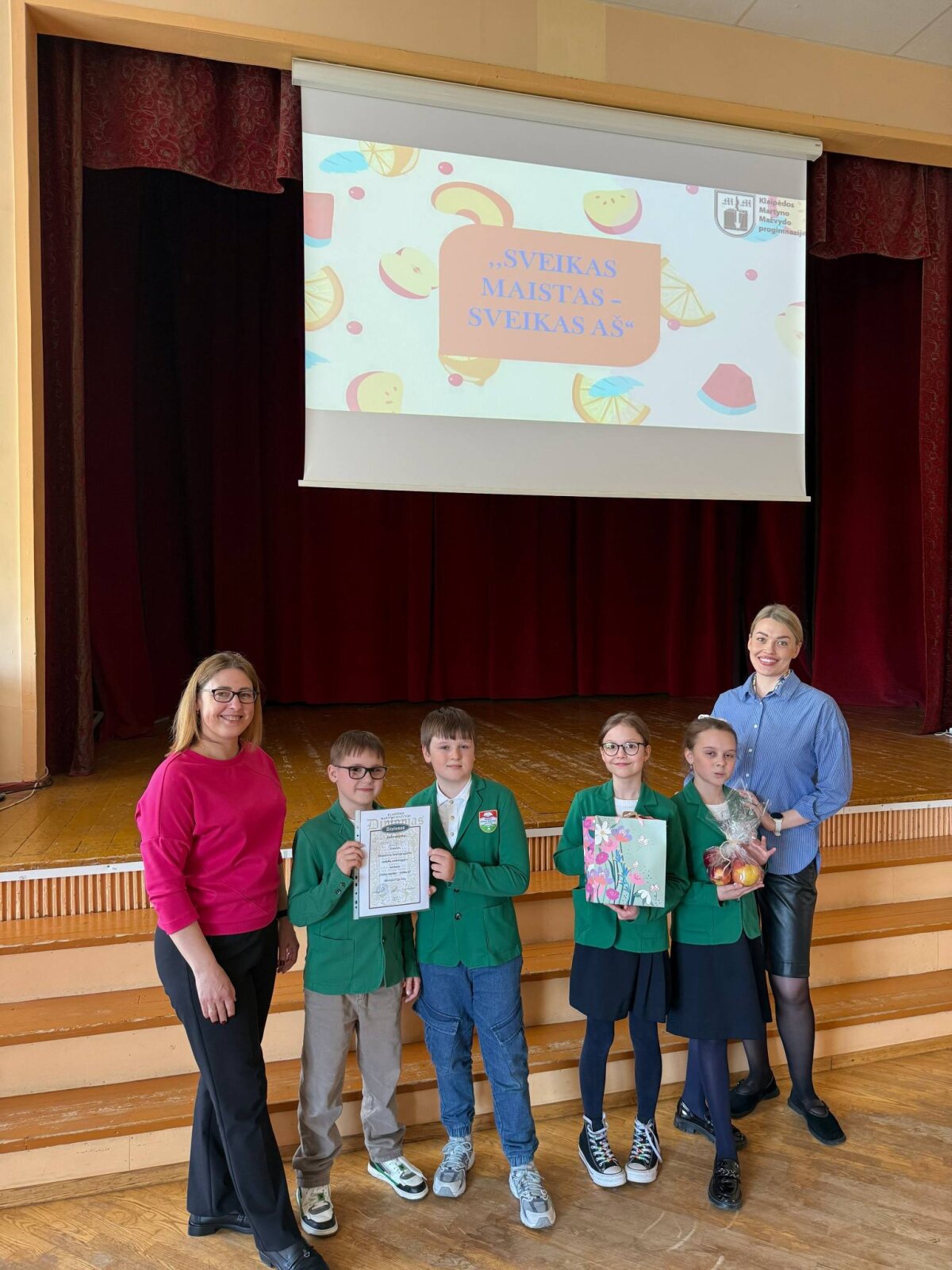 Mokiniai Izabelė M., Andrėja, Gilardas ir Dominykas D. aktyviai ir atsakingai ruošėsi, domėjosi sveikos mitybos principais ir bendradarbiavo komandoje. Jų pastangos atsipirko – komanda laimėjo 1-ąją vietą!
