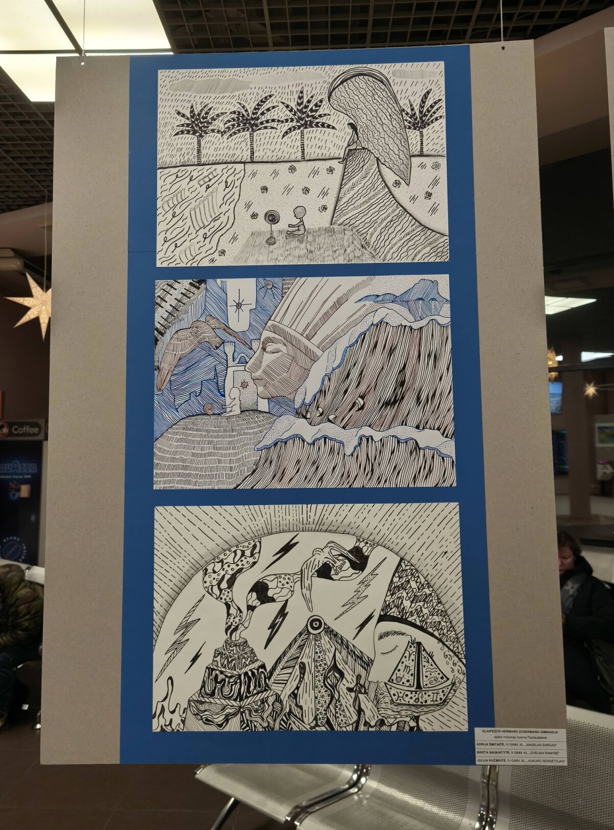 Klaipėdos miesto ugdymo įstaigų mokinių kalėdinių piešinių paroda šiais metais pristatoma pavadinimu „Kalėdų kelionė Čiurlionio takais”. Joje mūsų gimnazijai savo kūrybiniais darbais atstovauja IV gimnazijos klasių mokiniai Julija Kučmaitė, Adrija Šmitaitė, Einoras Sudeikis, II gimnazijos klasių mokinės Goda Bražionytė ir Marta Saukaitytė bei I gimnazijos klasės mokinės Viltė Jurkutė, Enrika Zubaitė ir Marija Erciūtė.