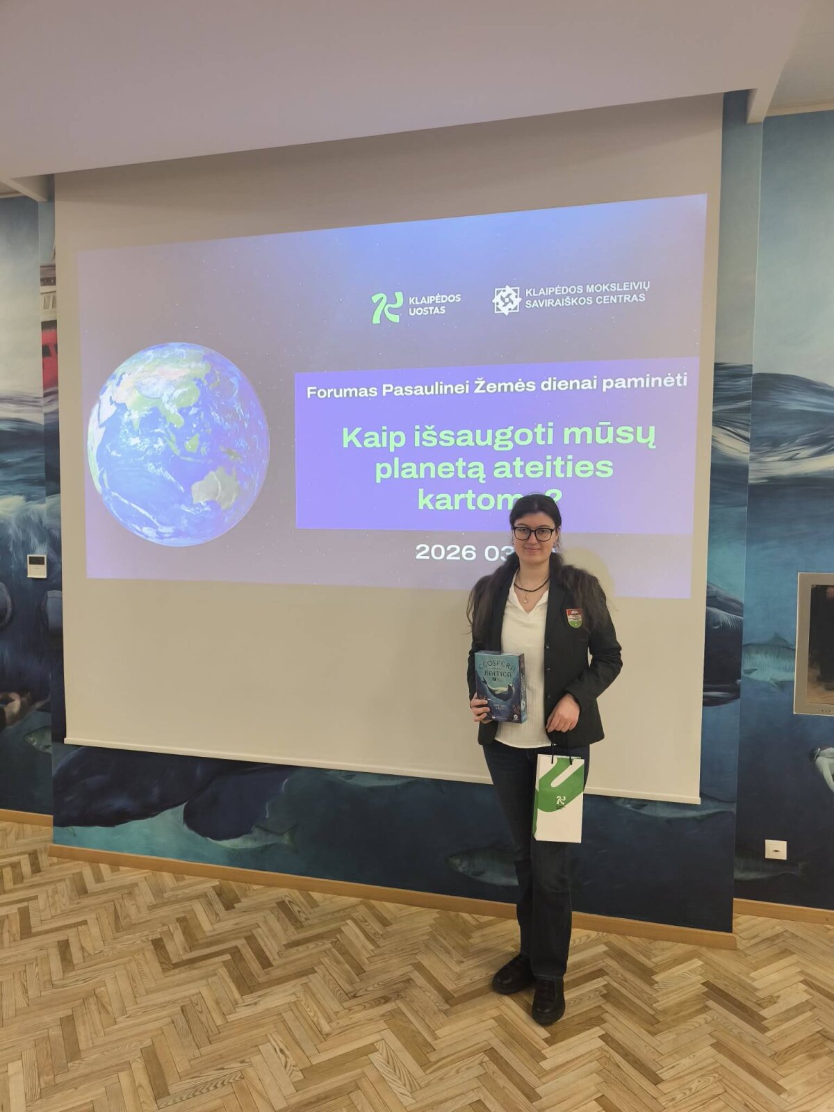 Šiandien Klaipėdos valstybinėje jūrų uosto direkcijoje vyko gamtosauginis forumas Žemės dienai paminėti. Augustė skaitė pranešimą tema: "Klimato kaitos poveikis Žemei ir žmogui". Šį pranešimą komisija įvertino pačiu geriausiu iš apdovanojo Augustę prizu.