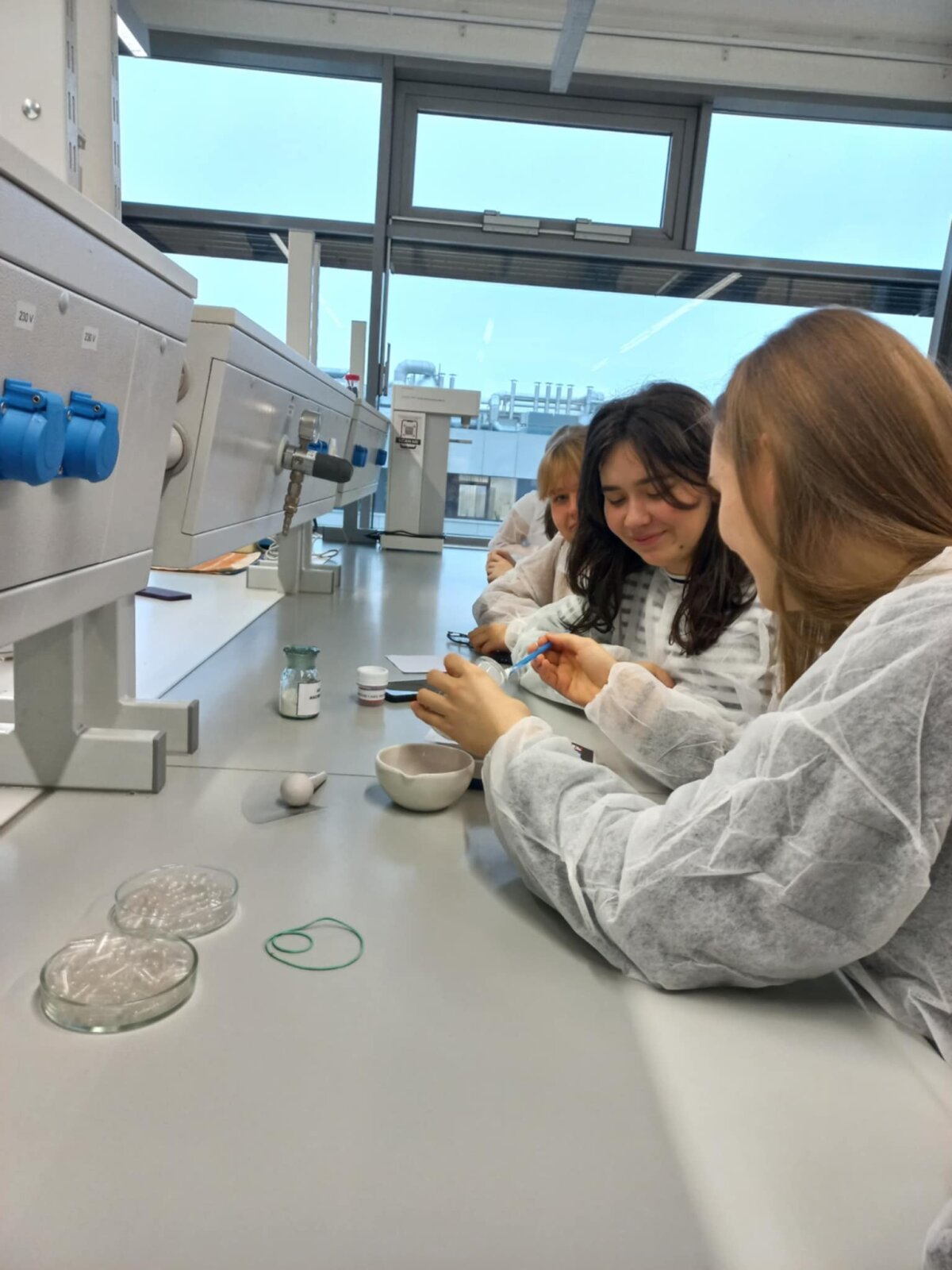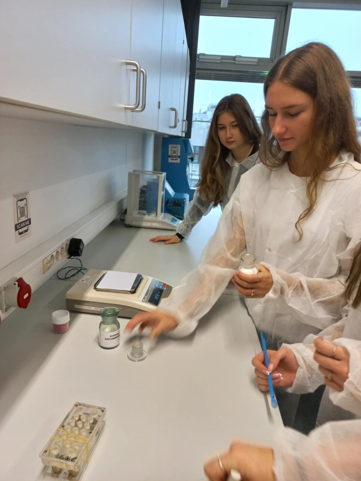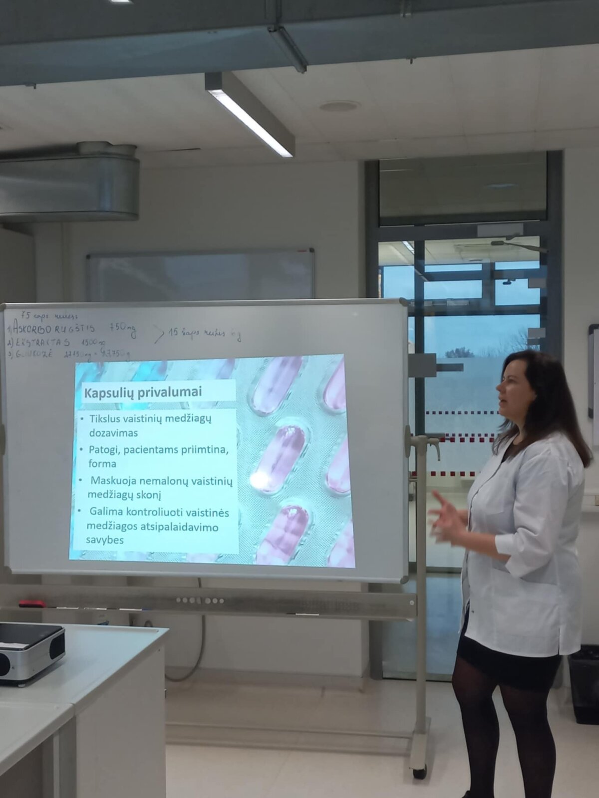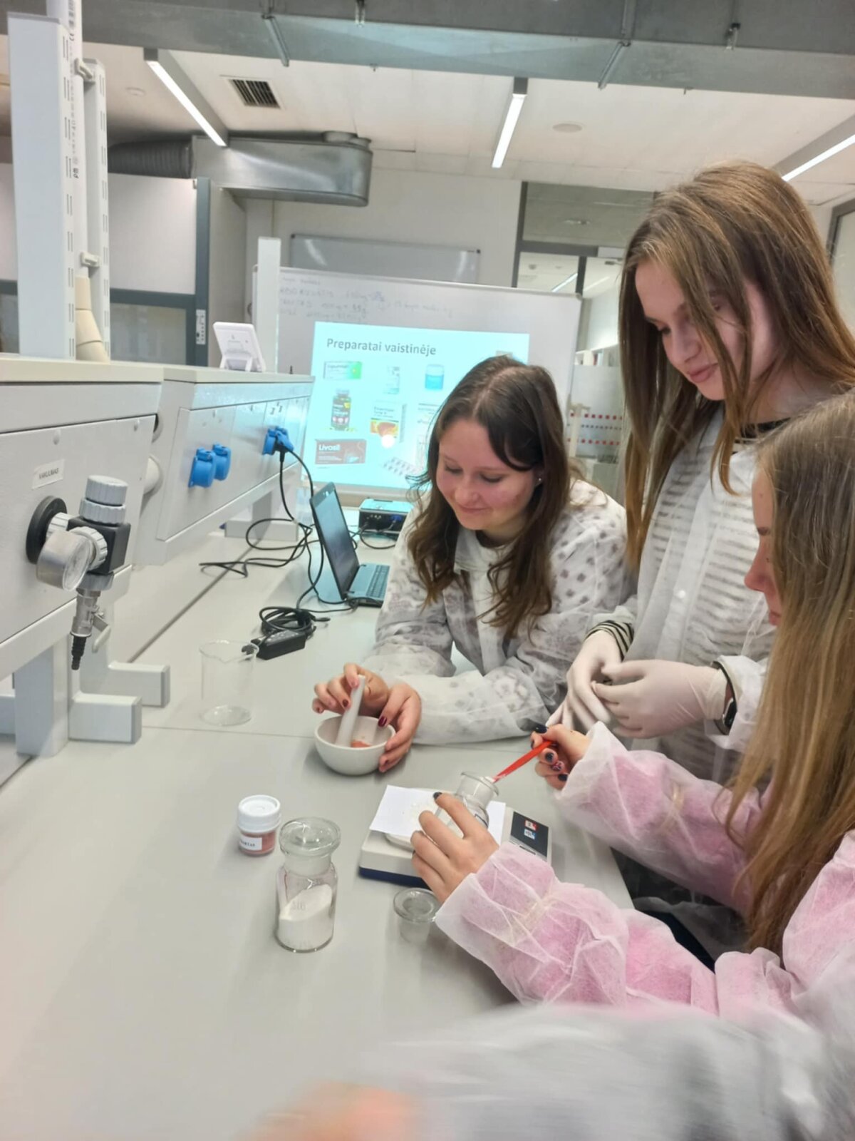 Ši grupė atliko laboratorinį darbą Farmacijos fakultete, kurio metu išbandė vaistų kapsulių kūrimo procesą. Fakulteto dėstytoja išsamiai papasakojo ne tik apie farmacijos studijų programą, bet ir pasidalino įžvalgomis, kokių savybių reikia norint būti geru farmacijos specialistu.