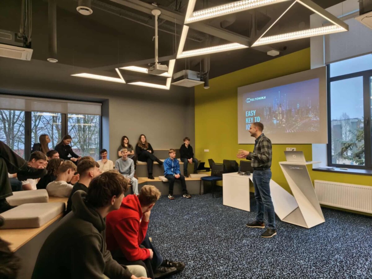 Mokiniai lankėsi „Teltonika“ įmonėje, transporto inžinerijos laboratorijoje, stebėjo, kaip atliekami medžiagų atsparumo bandymai, dalyvavo MIDF studijų programų pristatyme.