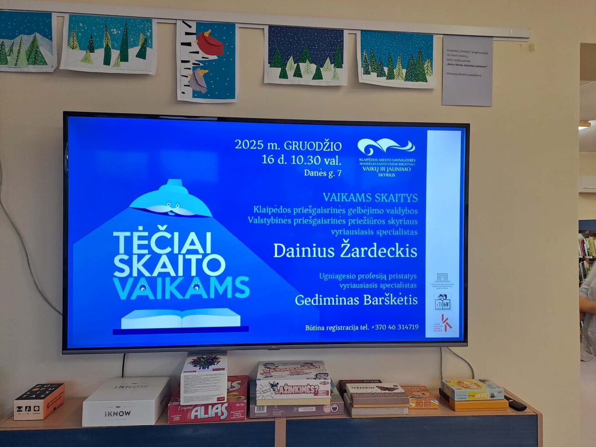 Gruodžio 16 d. Klaipėdos Imanuelio Kanto bibliotekos jaunimo ir vaikų skyriuje vyko edukacija-susitikimas su priešgaisrinės apsaugos tarnybos specialistais "Tėvai skaito vaikams". Į šį susitikimą vyko Hermano Zudermano gimnazijos 2c klasės mokiniai, lydimi mokytojų Žanetos Hochleitner ir Loretos Tamošaitienės. Edukacijos pradžioje ugniagesiai-gelbėtojai skaitė vaikams pasaką, kaip namie per šventes dėl neatsargumo kilo gaisras. Klausydami pasakos ir užduodami klausimus ugniagesiams, mokiniai ugdėsi šiuos gebėjimus: