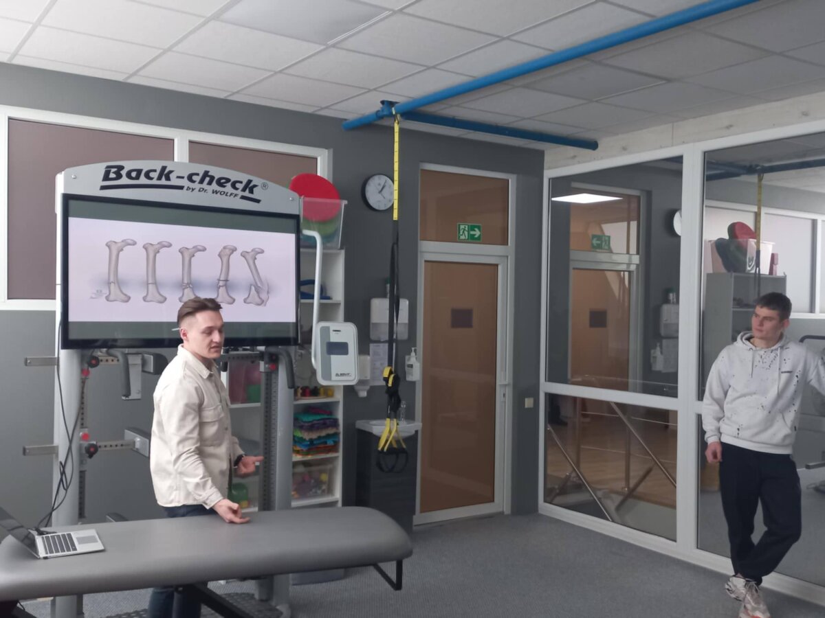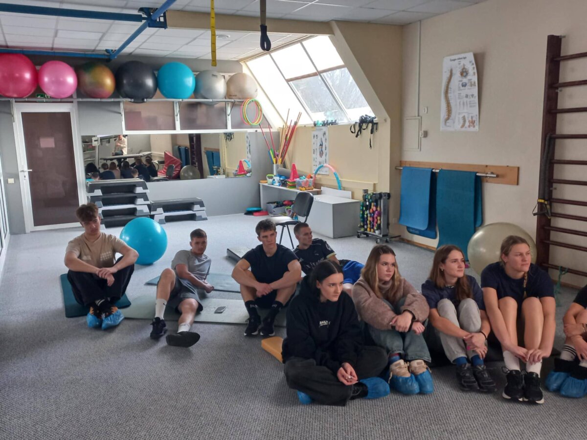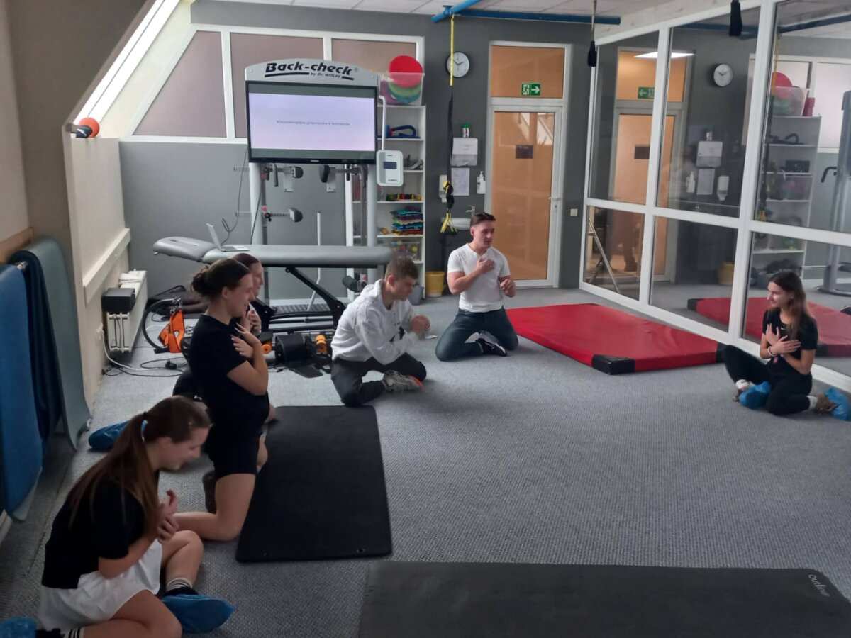 Vizito metu mokiniai turėjo galimybę iš arčiau susipažinti su kineziterapeuto profesija ir išgirsti, kas joje svarbiausia ne iš vadovėlių, o iš praktikų. Centro kineziterapeutas Lukas pasakojo apie dažniausias traumas, su kuriomis žmonės atvyksta į reabilitaciją, bei pabrėžė, kad šiame darbe neužtenka vien puikių teorinių žinių. Pasak jo, gebėjimas įsiklausyti į kiekvieną žmogų, išgirsti jo problemą, turėti empatijos, kantrybės ir mokėti motyvuoti – ne mažiau svarbūs įgūdžiai. Kartais sveikimo istorija prasideda tik po ilgo laiko ar daugybės pastangų, o kineziterapeuto vaidmuo – visą tą laiką būti šalia, palaikyti ir tikėti žmogumi tada, kai jam sunkiausia.