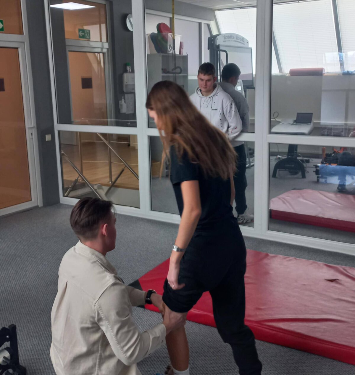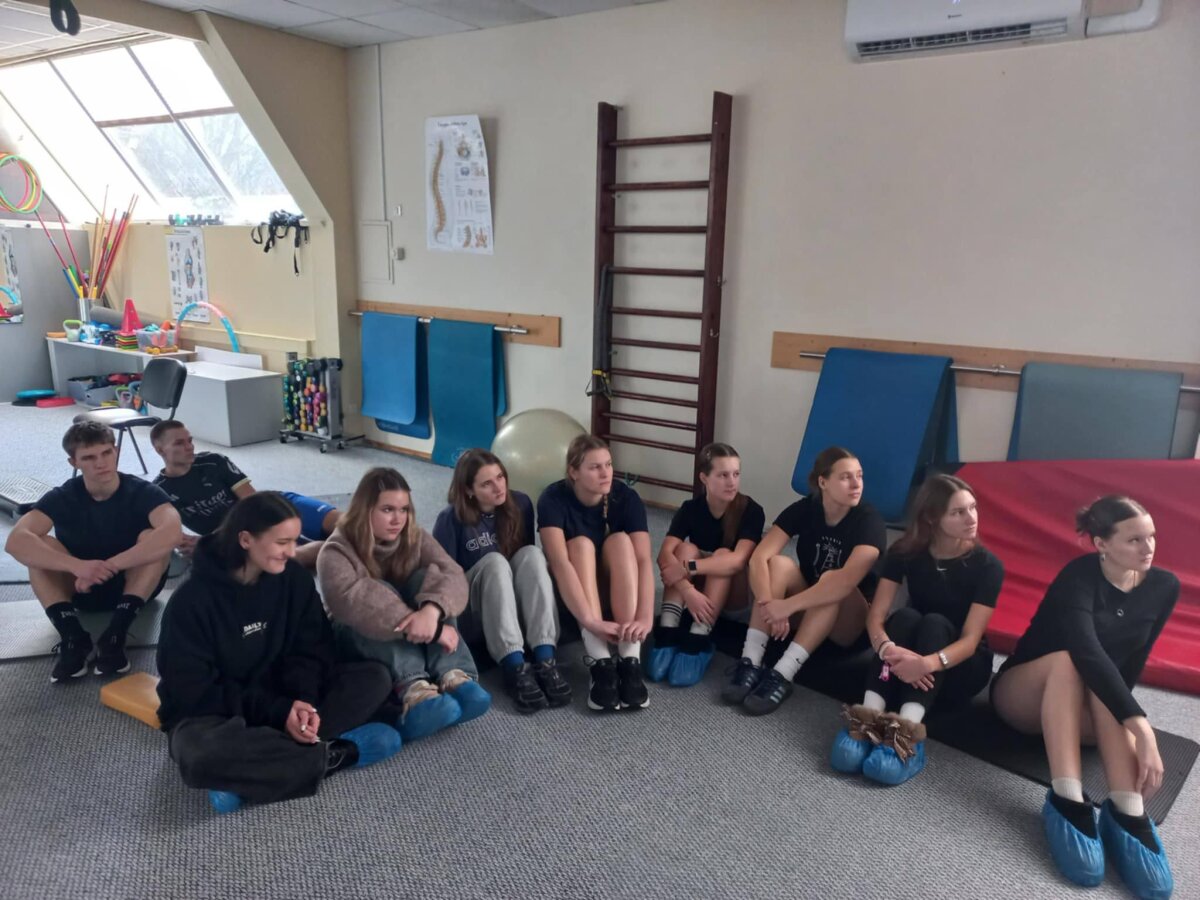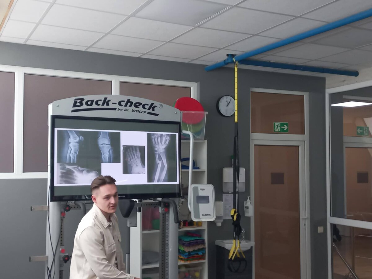 Vizito metu mokiniai turėjo galimybę iš arčiau susipažinti su kineziterapeuto profesija ir išgirsti, kas joje svarbiausia ne iš vadovėlių, o iš praktikų. Centro kineziterapeutas Lukas pasakojo apie dažniausias traumas, su kuriomis žmonės atvyksta į reabilitaciją, bei pabrėžė, kad šiame darbe neužtenka vien puikių teorinių žinių. Pasak jo, gebėjimas įsiklausyti į kiekvieną žmogų, išgirsti jo problemą, turėti empatijos, kantrybės ir mokėti motyvuoti – ne mažiau svarbūs įgūdžiai. Kartais sveikimo istorija prasideda tik po ilgo laiko ar daugybės pastangų, o kineziterapeuto vaidmuo – visą tą laiką būti šalia, palaikyti ir tikėti žmogumi tada, kai jam sunkiausia.