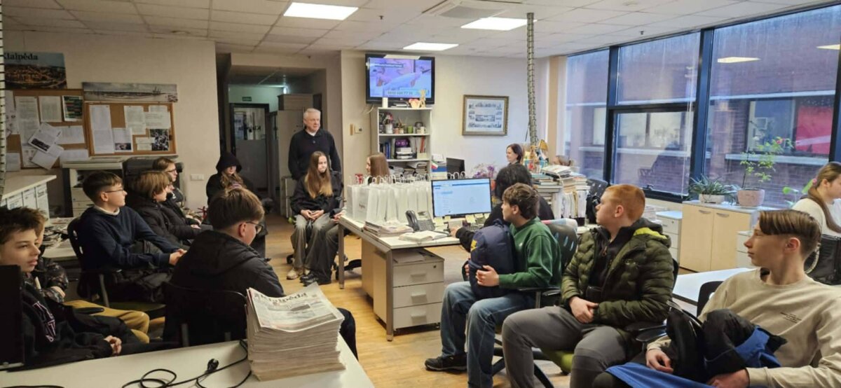 Pas mus svečiavosi bendrovės „Ignitis“ atstovas Artūras, pakvietęs mokinius į kū... -